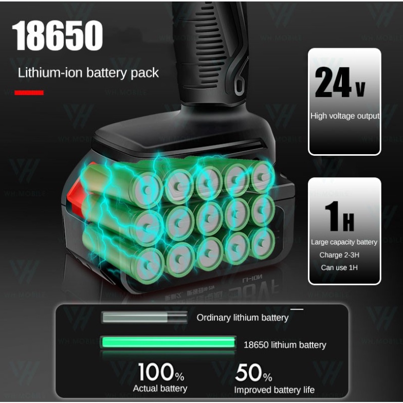 Ketahanan Yang Sangat lama, Menggunakan 2000MAH, bisa digunakan 1 jam terus menerus tanka kabel dan tekanan tinggi